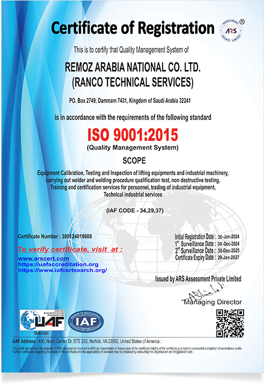 Remoz Arabia National Co.Ltd., welknown as RANCO Inspection and Calibration Services based in Dammam, Saudi Arabia, was established in 2018, backed by strong technical competency and ISO-approved Management System. We focus on ofering the region the most acurate Inspection and calibration Services while maintaining the delivery time and Customer Services equaly.